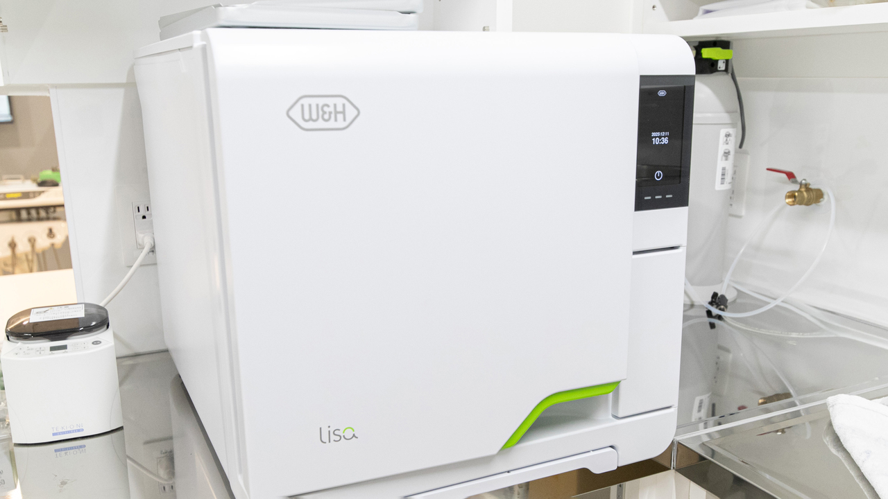 世界で最も厳しいヨーロッパの基準をクリアしたクラスB滅菌器です。治療に使う器具の衛生管理を徹底的に行っています。