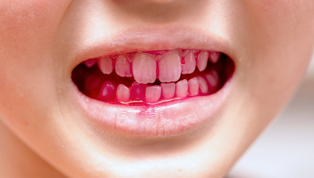 磨き残しが多い方や、虫歯・歯周病のリスクが高い方には、染め出し液で汚れを赤く色づけします。普段は歯と同じ色で見えにくいプラーク(歯垢)がはっきり見えるため、どこに歯ブラシが届いていないかが一目瞭然です。小さなミラーで確認いただきながら、効果的なブラッシング方法を丁寧にお伝えします。