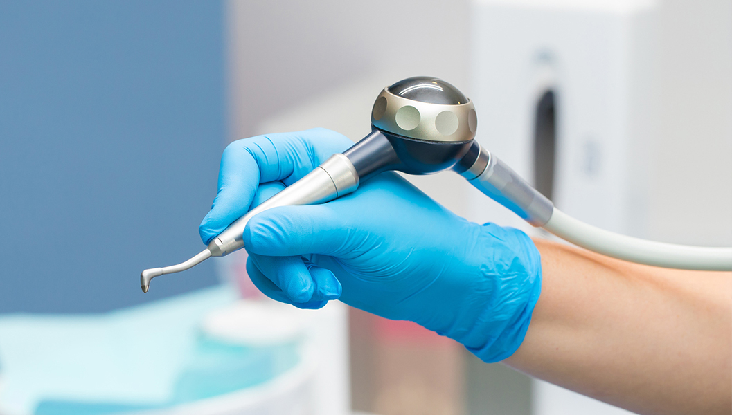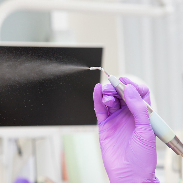 パウダーを歯にふきつけ、歯を傷つけることなくバイオフィルム(歯垢のかたまり)や着色汚れを除去します。