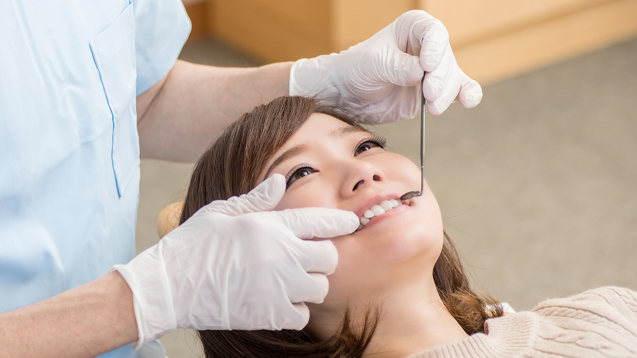 お口の中を拝見し、歯や歯ぐきの状態を確認します。